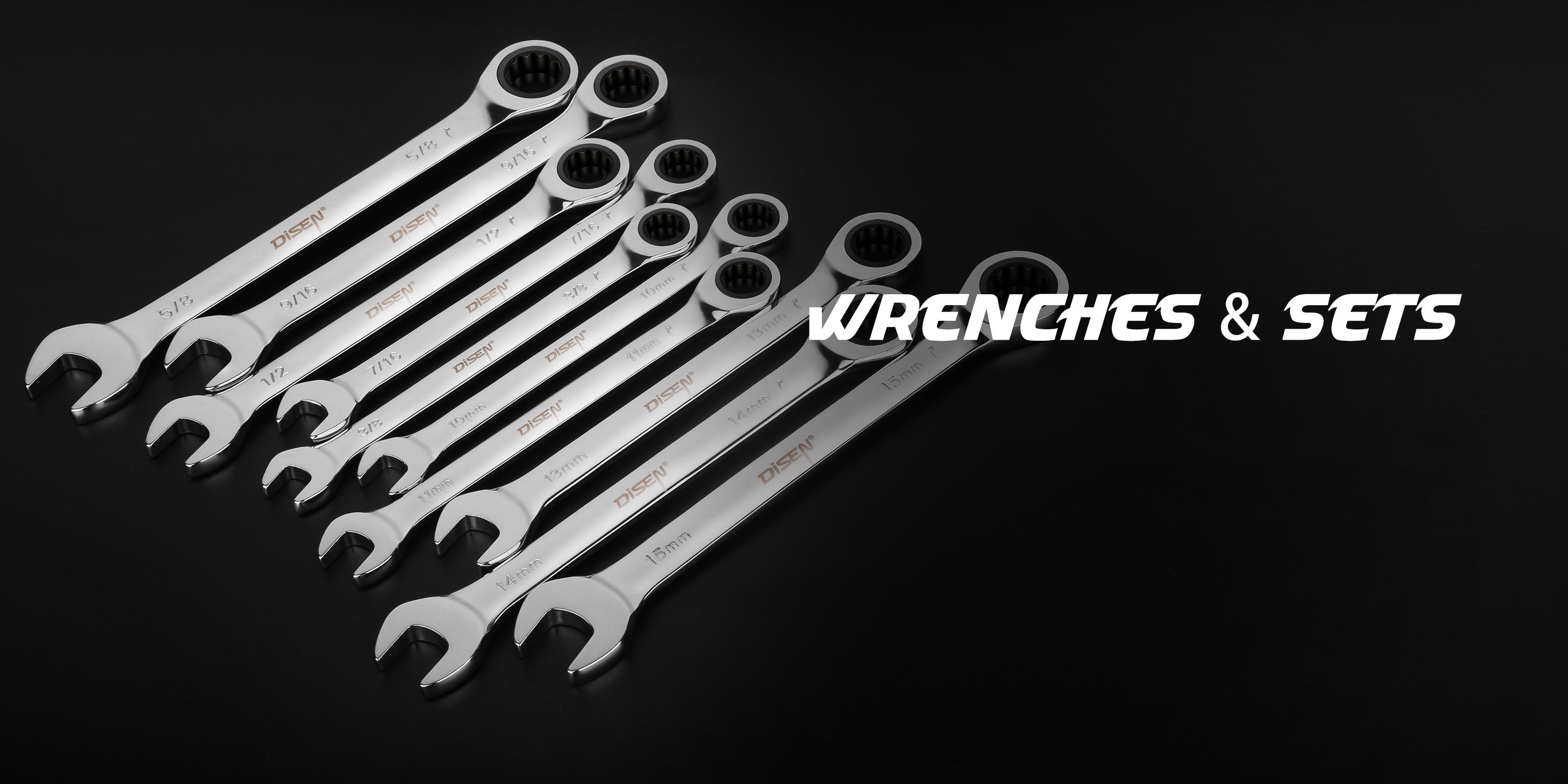 DISEN 12-Piece Reversible Ratcheting Wrench Set | Metric 8-19mm | 72-Tooth Crank Design | CR-V Steel with Nickel Plating & Organizer Rack