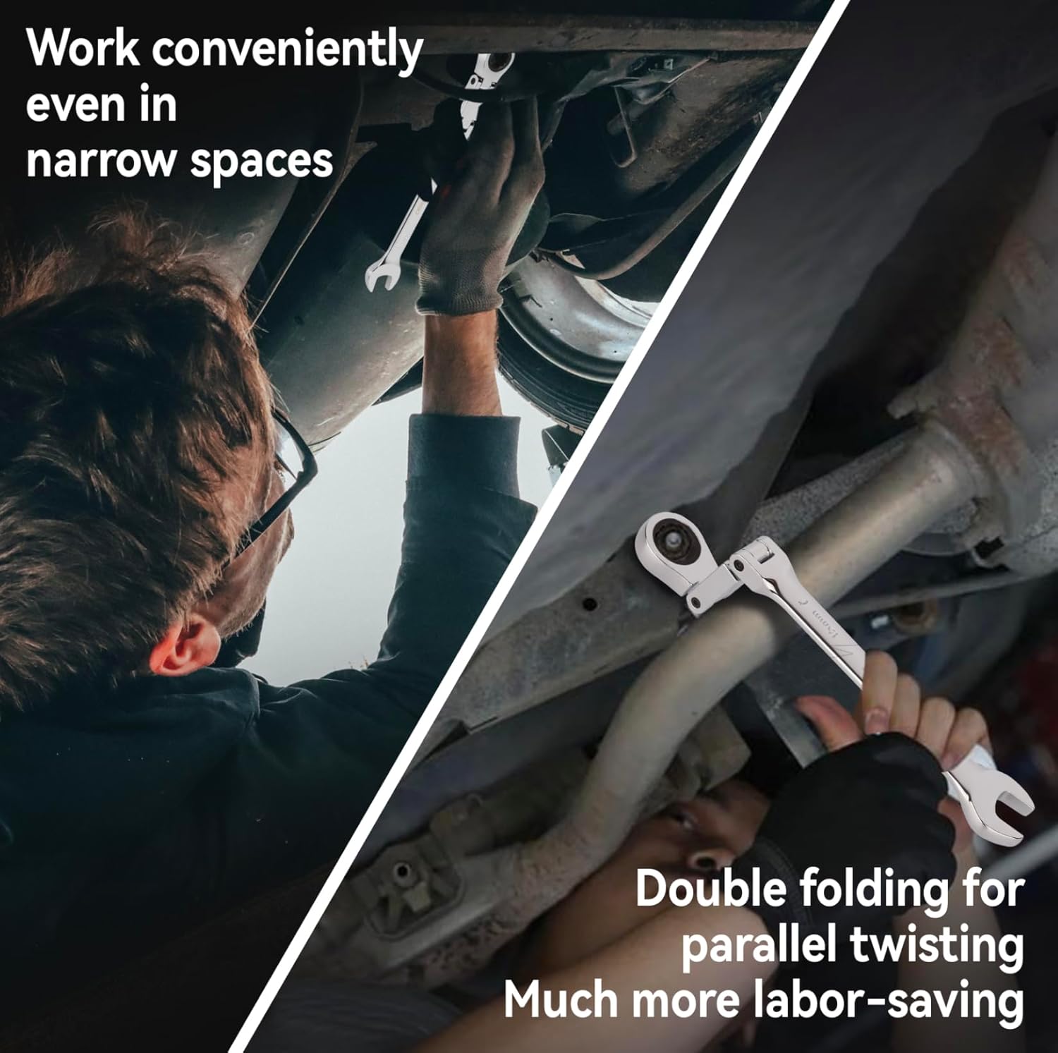 Double-folding wrench heads allow parallel twisting, reducing effort and maximizing access—perfect for tight or hard-to-reach spaces. -